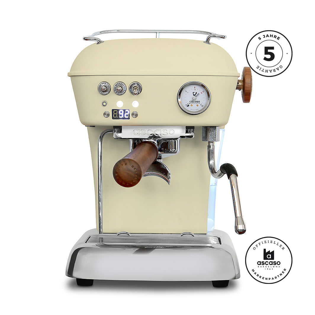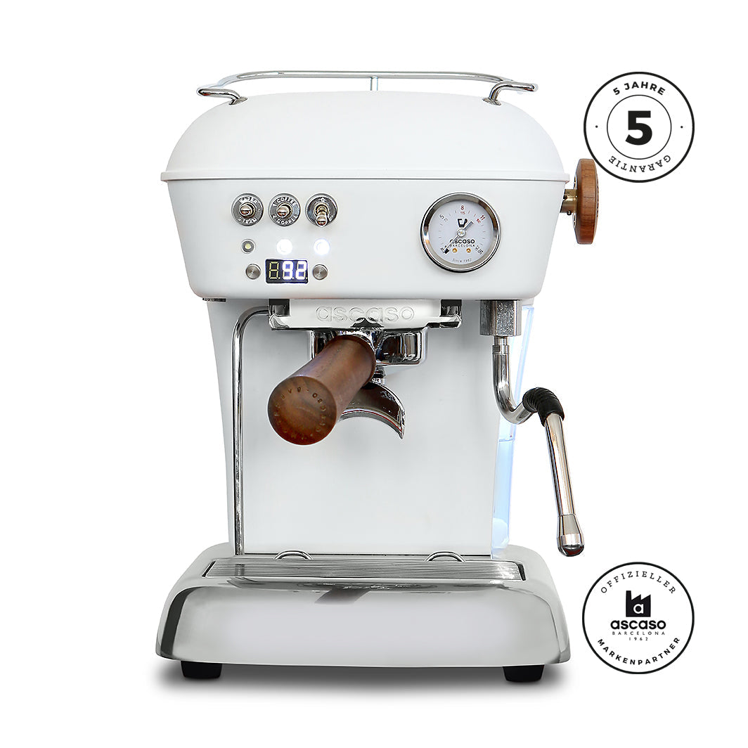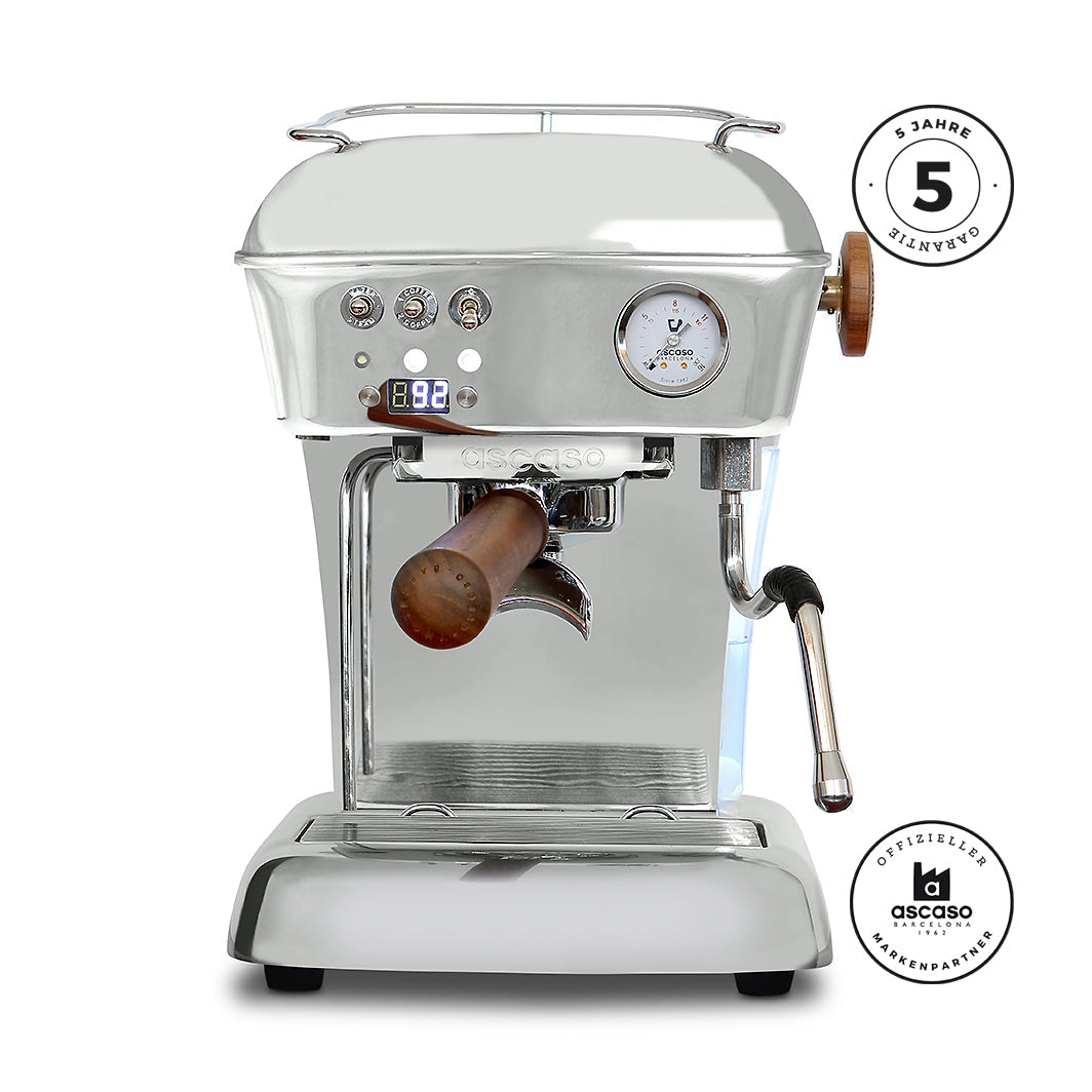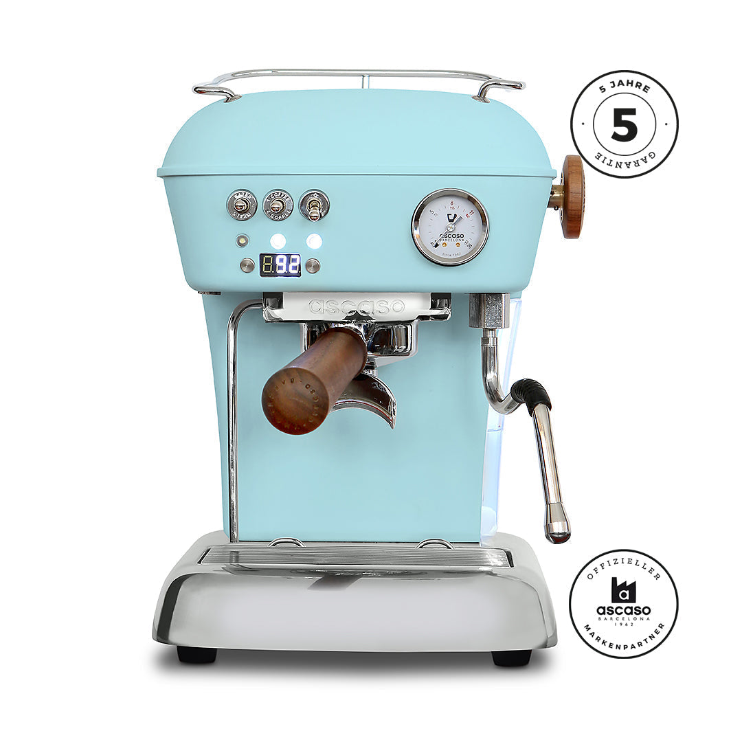 Mit der ursprünglichen ascaso Dream hat die Dream PID eigentlich nur noch das Gehäuse gemein. In der niedlichen Verpackung steckt nun ein echtes Barista-Tool. Gradgenaue Themperaturvorwahl, einstellbare elektronische Pre-Infusion, Shot-Clock, Portionierelektronik für zwei Mengen, ein Profi-Siebträger und die von außen zugängliche Brühdruckregulierung bieten alles, was zur optimalen Extraktion hochwertiger Espressi benötigt wird.