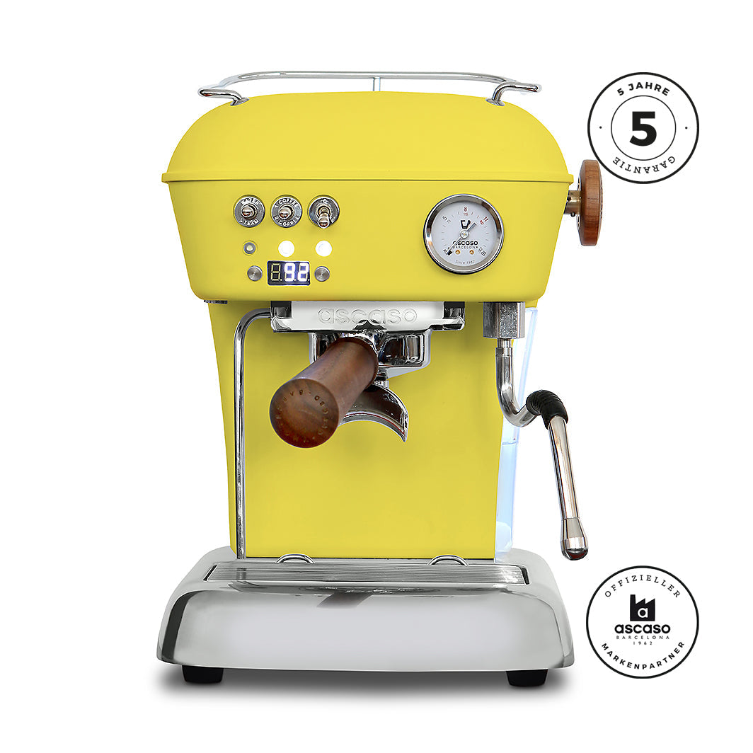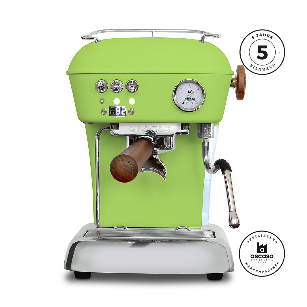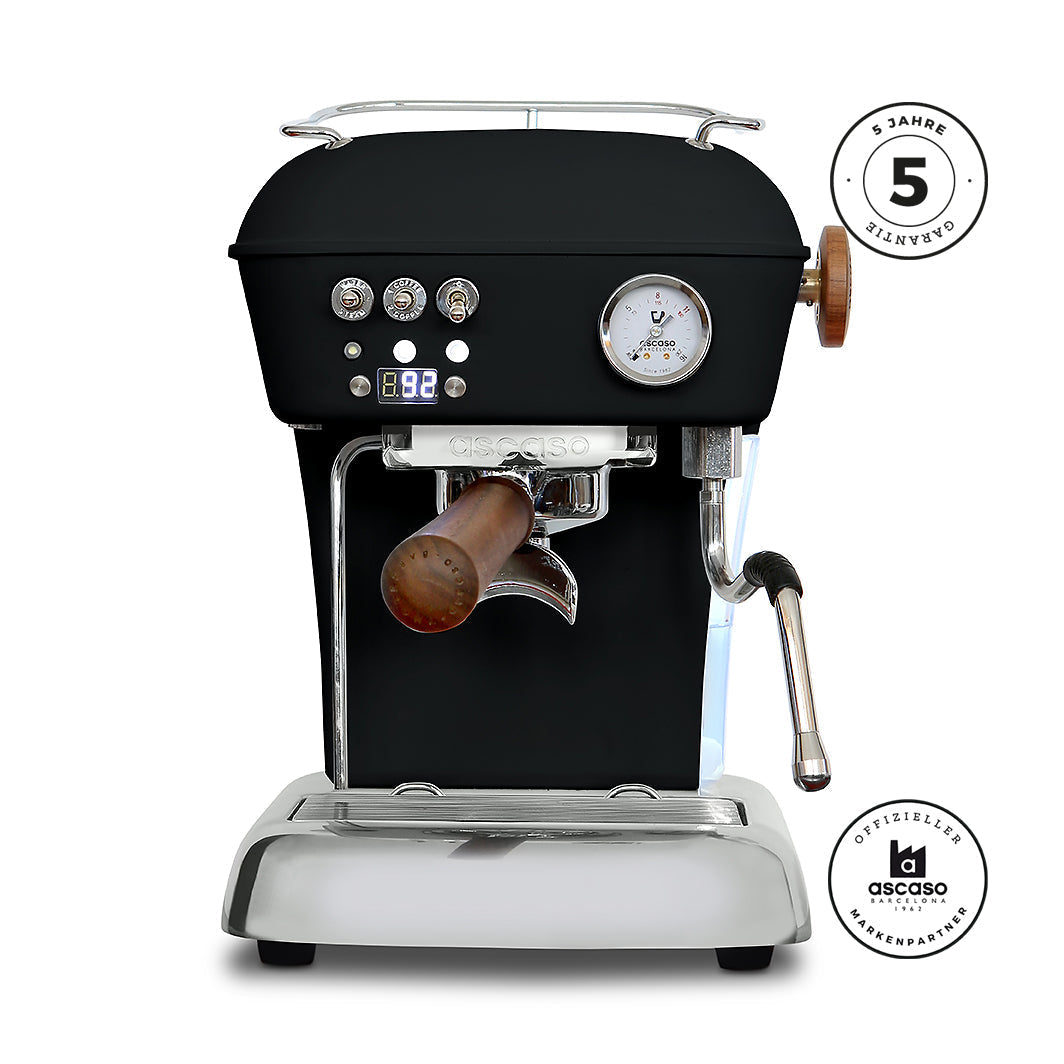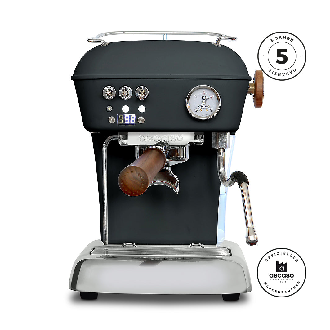 Mit der ursprünglichen ascaso Dream hat die Dream PID eigentlich nur noch das Gehäuse gemein. In der niedlichen Verpackung steckt nun ein echtes Barista-Tool. Gradgenaue Themperaturvorwahl, einstellbare elektronische Pre-Infusion, Shot-Clock, Portionierelektronik für zwei Mengen, ein Profi-Siebträger und die von außen zugängliche Brühdruckregulierung bieten alles, was zur optimalen Extraktion hochwertiger Espressi benötigt wird.