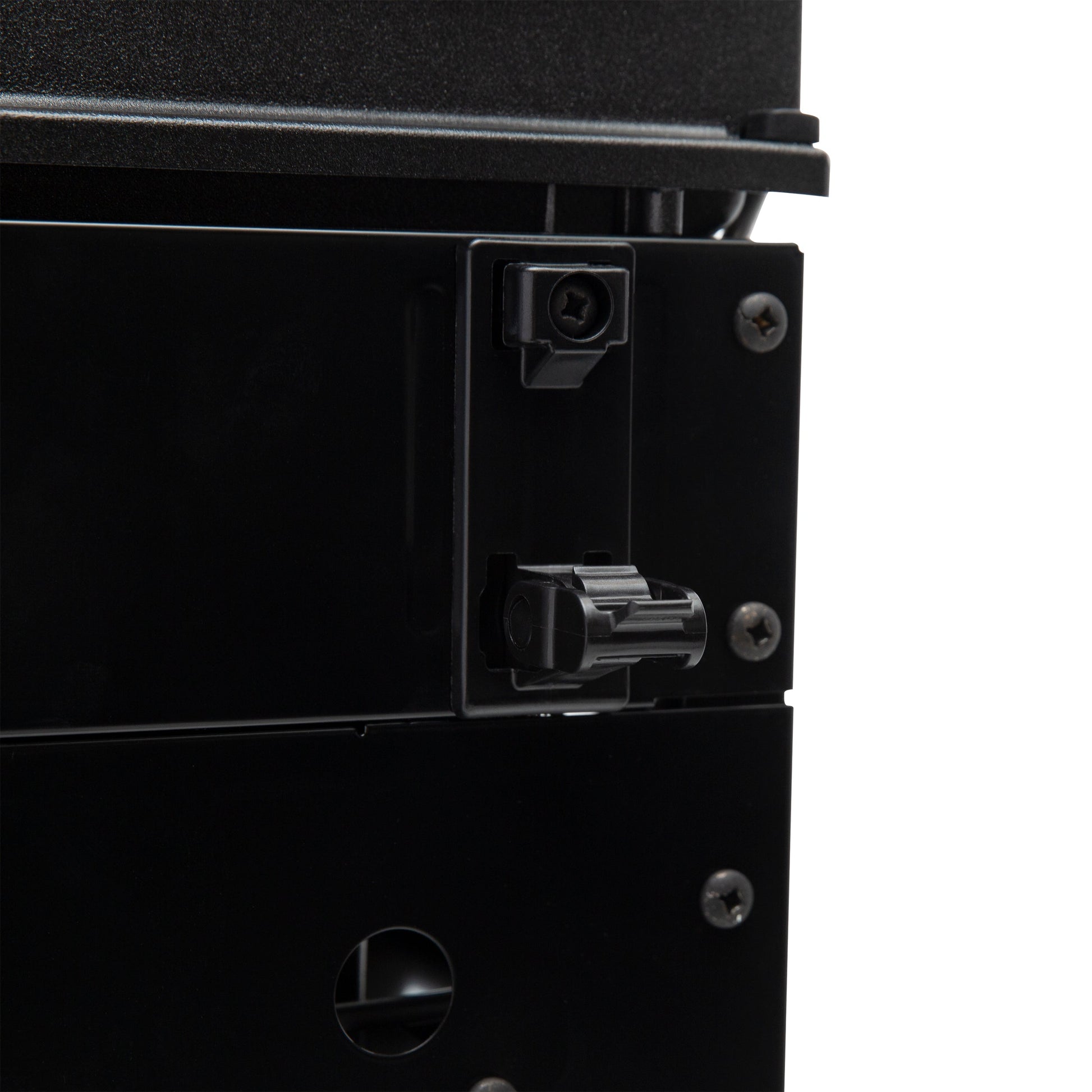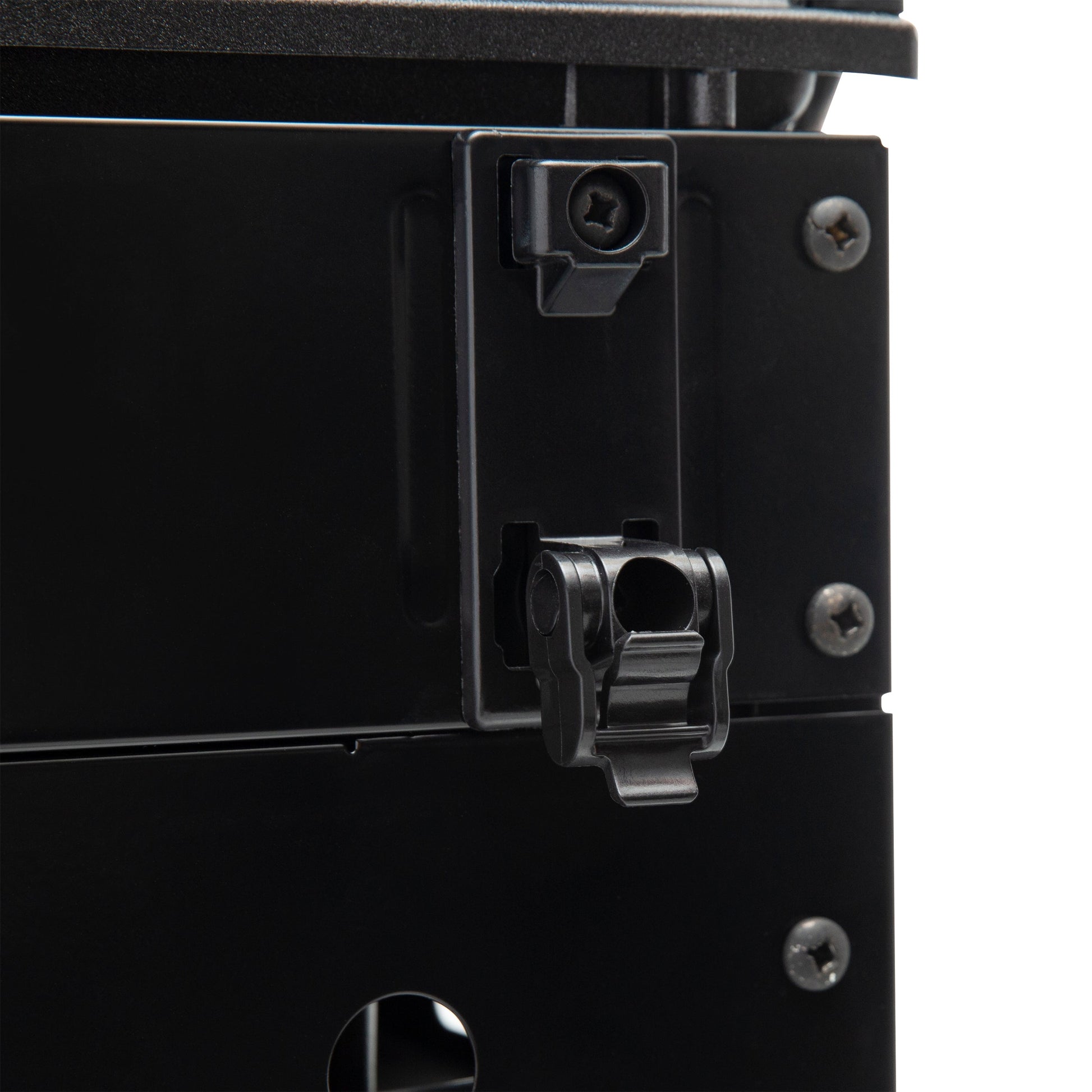 2 schwarze Türen mit Edelstahl Griffen | 4 feststellbare Lenkrollen |