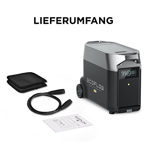 - [Lieferumfang] 1. DELTA Pro Smart Zusatzakku, 2. DELTA Pro Zusatzakku-Kabel, 3. Benutzerhandbuch, 4. Griffabdeckung. EcoFlow bietet außerdem 2 Jahre Garantie und einen freundlichen Kundendienst, wann immer Sie ihn benötigen.