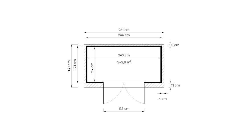 - Außenmaß: 251 x 139 cm (überdachte Fläche)