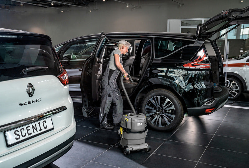 Die Kärcher Akkus erlauben besonders lange Laufzeiten des Saugers und werden im Gerät durch eine Klappe wirkungsvoll vor äußeren Einflüssen geschützt. Die kompakten Maße und das geringe Gewicht des NT 22/1 Ap Bp erleichtern Transport sowie Unterbringung und ermöglichen auch Einsätze bei engen Platzverhältnissen und in stark frequentierten Bereichen.