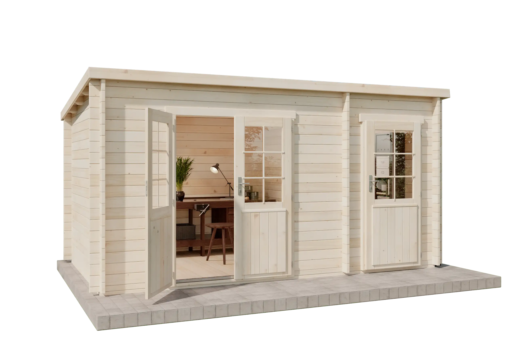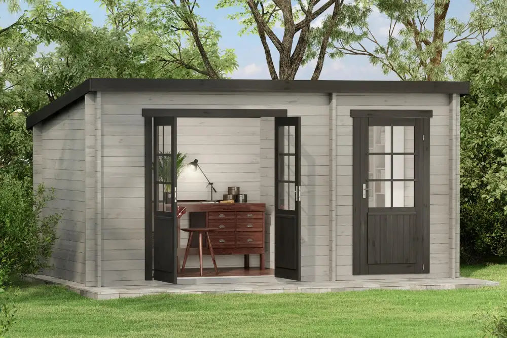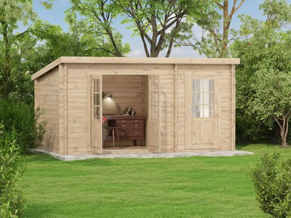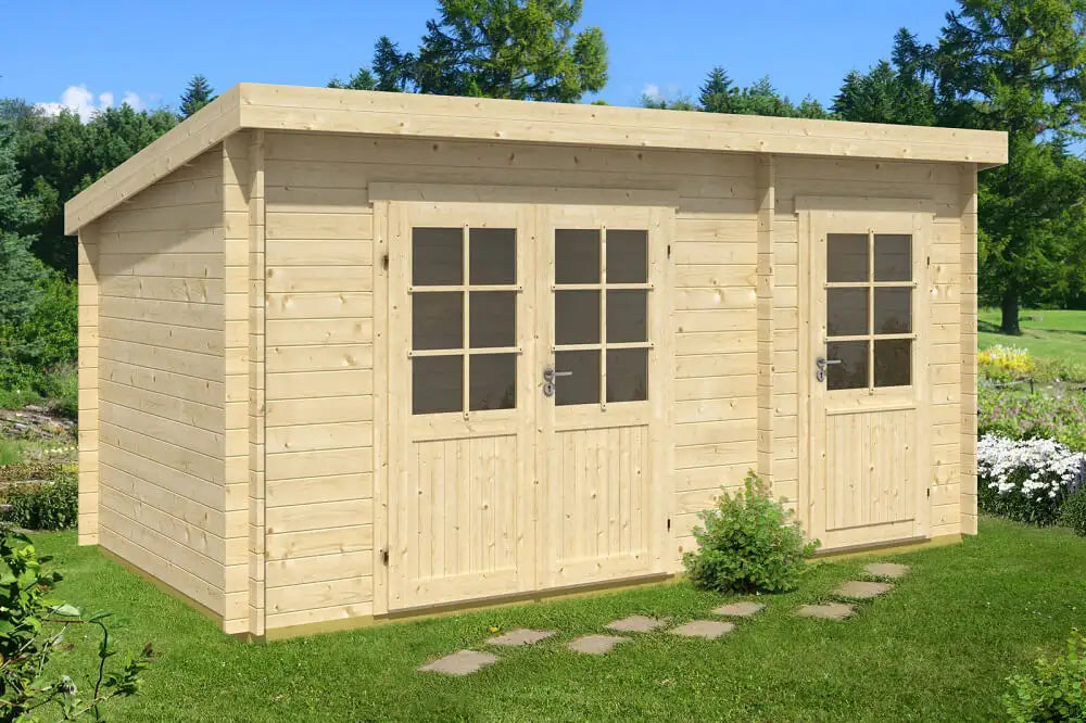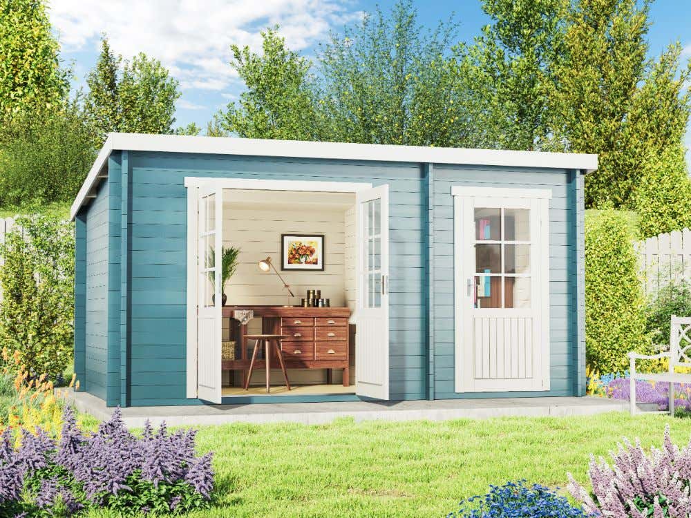 Pultdach Gartenhaus Maria mit Anbau