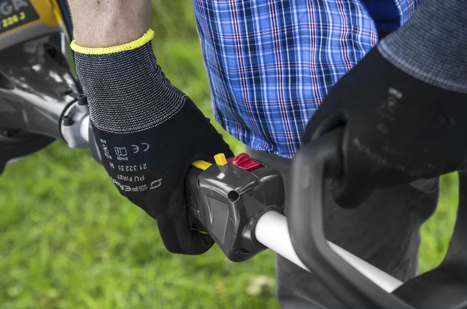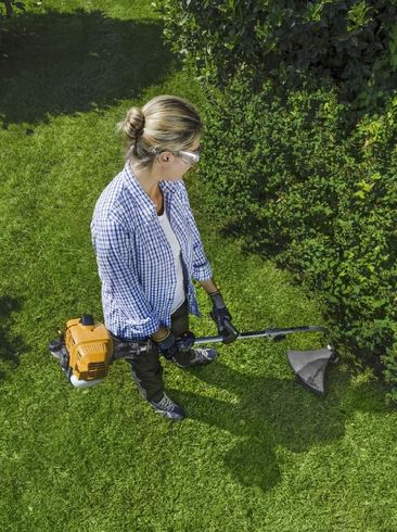 Der GT 330 A ist mit einem Einhandgriff und dem innovativen Tap&Go-Doppelfaden-Trimmerkopf ausgestattet, bei dem sich der Trimmerfaden einfach durch Auftippen des Trimmerkopfs auf den Boden nachladen lässt. Dieser Rasentrimmer weist 38 cm Schnittbreite auf.