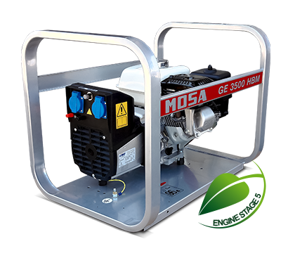 Der Tragbarer Benzin Stromerzeuger GE 3500 HBM mit HONDA OHV Motor, Reversierstart, luftgekühlt, Rohrrahmen tragbar, 2 Schuko Steckdosen 230 Volt, Sicherung, Batterielader 12 Volt - 10A, Synchron Generator, Motorstopp Öl, Gewicht 45 kg
