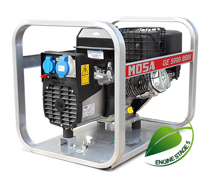 Der Mosa Stromerzeuger GE 5000 BBM GE 5000 BBM ist eine Universalmaschine. Er ist mit einem großen Briggs & Stratton XR1450 Motor nit einer Nennleistung von 8,8 PS ausgestattet. Der 20 Liter-Kraftstofftank ermöglicht eine längee Lebensdauer der Maschine.