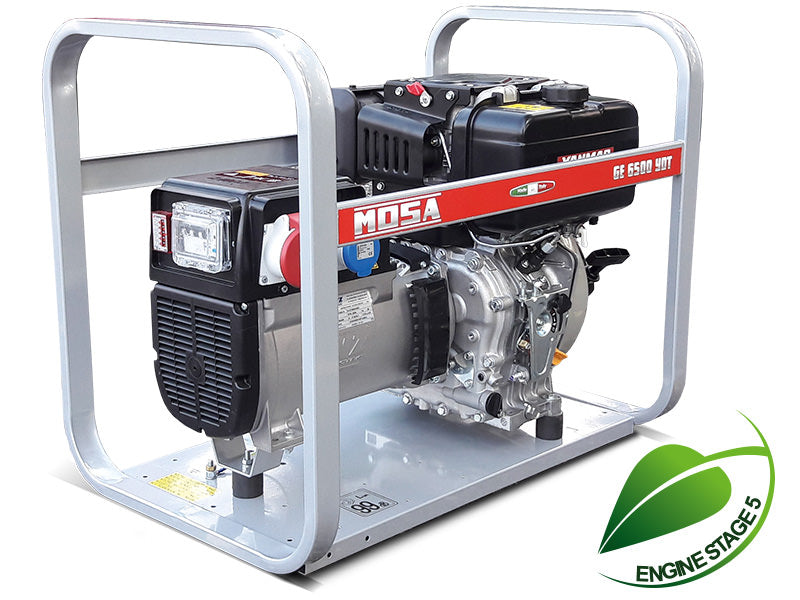 Der dreiphasige Dieselgenerator GE 6500 YDT kann eine maximale Leistung von 5.1 KW erzeugen. Der intergrietre Yanmar L100N hat einen Hubraum von 435 cm³ und kann eine Nennleistung von 8.5 PS erzeugen.