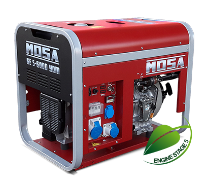 Der Benzin-Stromerzeuger GE S-6000 YDM wird von der italienischen Firma MOSA hergestellt. Dank seines großen 20 Liter Tanks hat der Generator eine Laufzeit (75% der PRP) von 20 Stunden.