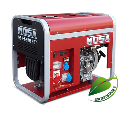 Der dreiphasige Dieselmotor GE 6500 YDT kann eine maximale Leistung von 5,1 kw erzeugen. Der intergriete Yanmar-Dieselmotor L100N hat einen Hubraum von 435 cm³ und kann eine Nennleistung von 8,5 PS erzeugen.