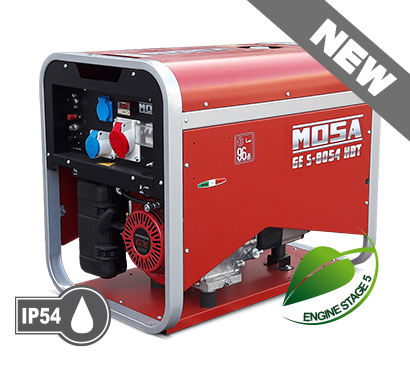 Der Benzin-Stromerzeuger GE S-8054 HBT wird von der italienischen Firma MOSA hergestellt. Dank seines großen 20 Liter Tanks hat der Generator eine Laufzeit (75% der PRP) von 8,5 Stunden.